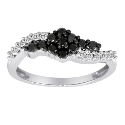 Buy Now! 10K White Gold 0.50 cttw Black and White Swirl Diamond Ring, Size 6