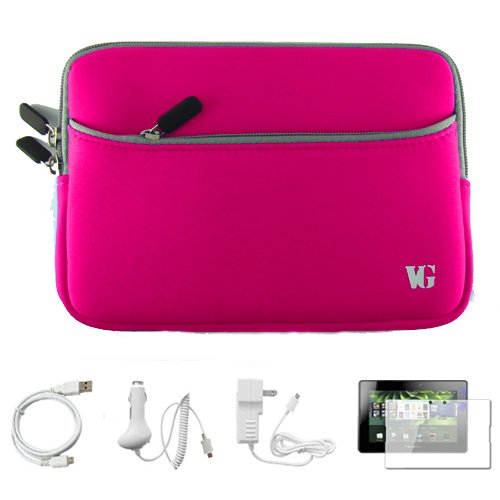 --> Magenta Neoprene Protective Sleeve Carrying Case Cover, Sky Blue for Blackberry Playbook 7-inch Tablet Compatible with all Models (16GB, 32GB, 64GB) + Anti Glare Clear Screen Protector + White Rapid Travel Wall Charger + White Rapid Car Charger + White Micro USB Data Cable Cord + SumacLife TM Wisdom Courage Wristband - - Review by Ethan
