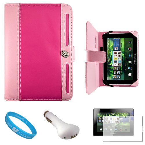 --> Magenta with Baby Pink Executive Leather Jacket Carrying Case Cover with Accessory Slots for Blackberry Playbook 7-inch Tablet Compatible with all Models (16GB, 32GB, 64GB) + Clear Screen Protector + White USB Car Charger with LED Power Indicator + SumacLife TM Wisdom Courage Wristband - - Review by Dane