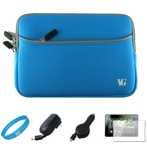--> SumacLife Neoprene Protective Sleeve Carrying Case Cover, Sky Blue for Blackberry Playbook 7-inch Tablet Compatible with all Models (16GB, 32GB, 64GB) + Anti Glare Clear Screen Protector + Black Retractable Car Charger + Black Retractable Travel Wall Charger + SumacLife TM Wisdom Courage Wristband - - Review by Noah