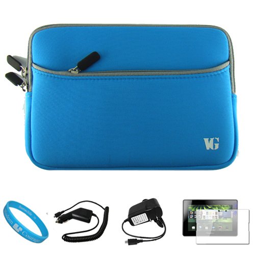 $ Save Price SumacLife Neoprene Protective Sleeve Carrying Case Cover, Sky Blue for Blackberry Playbook 7-inch Tablet Compatible with all Models (16GB, 32GB, 64GB) + Anti Glare Clear Screen Protector + Black Rapid Car Charger + Black Rapid Travel Wall Charger + SumacLife TM Wisdom Courage Wristband